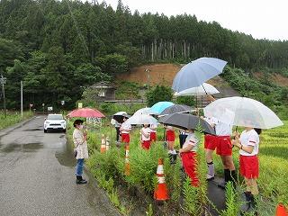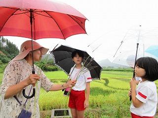 田植えから3か月、今日はアート田の観察会です。少し雨の日が続いて予定より遅くなってしまいました。