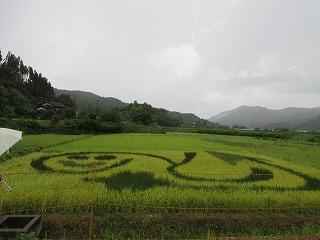 緑米・赤米・コシヒカリの3色で模様がくっきりと浮かび上がっています。