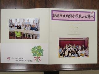 森会長様、事務局長 野郷様、そして、この協議会と町野小の縁を結んでくださったかほく市の藤井様と一緒に記念写真を撮りました。