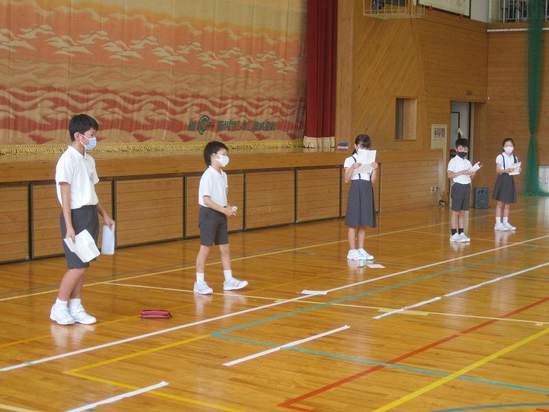 たくさんのお客様や保護者の皆様を迎えて「6年生を送る会」が開かれました。各学級が6年生の卒業を祝って,劇や音楽などの出し物を披露しました。子供たちからは,緊張した様子も見受けられましたが,発達段階に応じてがんばっている姿を見ることができました。限られた時間内での準備でしたが,どの学年もそれぞれのカラーが反映した出し物でした。また,トランペット鼓隊の引継ぎでの「かっこいいツイスト」の演奏では,これまでに6年生のアドバイスのもと積み重ねて来た練習の成果を堂々と演奏する新メンバーの姿に,頼もしさが感じられました。