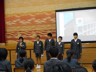 4月から『東陽小中学校』としてスタートするにあたり、新しい校歌は、現在の東陽中の校歌とすることになっています。開校式までに小学生も歌えるようになってほしいと、東陽中学校生徒が贈呈式を企画し、東陽中学校校歌『大空に』を歌って聞かせてくれました。