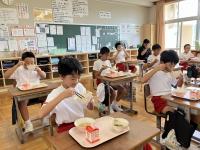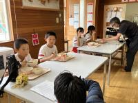 今日は、ランチルーム(1~4年生)にテレビ金沢と石川テレビ、北國新聞社が取材に来られました。
