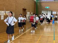 今日は、動きをそろえて、行進しながら演奏する練習をしました。