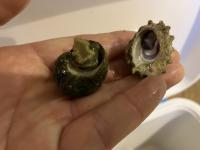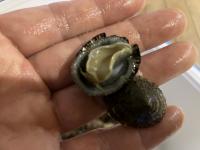 生き物は6種類います。岩の色と同じような姿の貝もありました。
