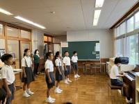 始業式は、熱中症予防のためMeetで行いました。6年生の伴奏に合わせて各教室で校歌を歌いました。