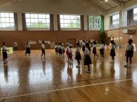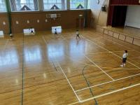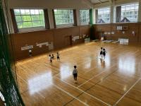 体育館では、ハンドベースボールやドッジボールをして遊んでいました。