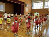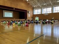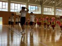 5・6年生が指示を出してお手本を見せ、手拍子や動き・声をそろえて、応援しました。