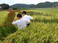 ひげが生えている穂、まだ花が咲いている穂、背の高さの違いなどに疑問をもち、質問していました。