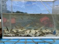在来種と外来種の入り混じった水槽を見て複雑な様子。