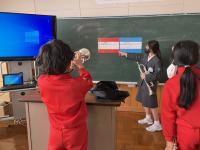 グループで話し合ったり大型テレビに映したりして発表しました。