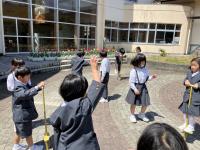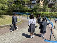 2年生が1年生に学校の遊び場所のことを教えてくれました。