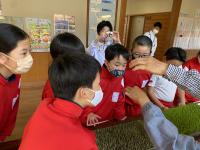 今年も地域の方のお世話で、学校田で古代米を植えることになりました。