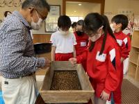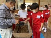 そして、やわらかい土のお布団を作って、種籾をまき、そっと土のお布団をかけました。