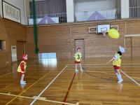 今日は風船を使って「○○くん!」「○○さん!」と友達の名前を呼んで次の人にわたすゲームをしました。