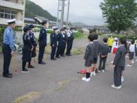 輪島警察署の交通課、校区の駐在所のおまわりさん、交通安全推進隊の方々のご協力のもと、