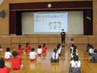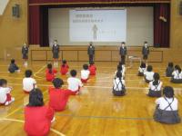 委員長の6年生が、委員会活動の取組み状況や全校児童に守ってほしいことを大きな声で伝えました。