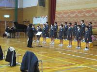 音楽の時間練習した2部合唱「ひばり」「シーラカンスをとりにいこう」を披露をしました。