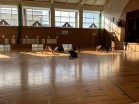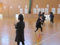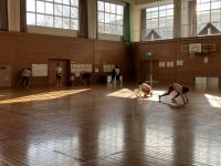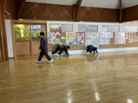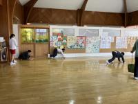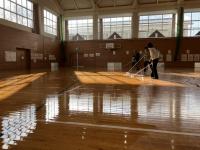 2023年3月3日 17時32分体育館とランチルームのワックスがけをするため、3~6年生雑巾がけをしました。