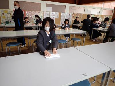 久しぶりの給食でしたが、担当児童がてきぱきと準備をしていたので、4時間目終了後すぐに「いただきます」をすることができました。片付けそうじも率先して行っている様子が立派でした。