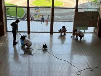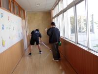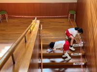 今日は6限終了後、小学校3~6年生と中学生で校内の水拭き掃除を行いました。