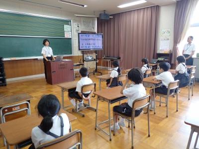1学期の様子を紹介するプレゼンのあと、56年生が考えてくれたクイズで見に来てくださった皆さんと一緒に楽しみました。