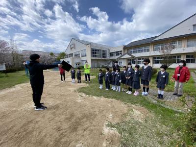 任命式後には、児童全員で中庭の遊び場所の確認を行いました。