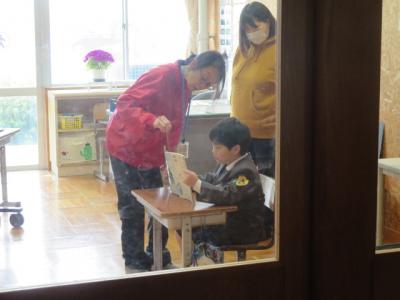 「あいさつをする・おともだちをたいせつにする・あきらめずにがんばる」という校長先生のお話を一生懸命きいていました。