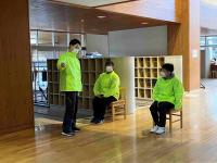 ピリッとした緊張感の中、歌や言葉を大きな声でできるか練習をしました。