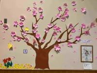 掲示物も卒業式ムード。8人の旅立ちをお祝いする日もカウントダウンです。