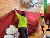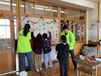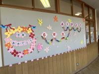 玄関、体育館、卒業生の教室、廊下、あちこちをきれいに掃除し、たくさん飾りつけをしました。
