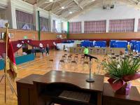 会場は、町野小体育館。後ろ半分は、避難所となっていますが、
