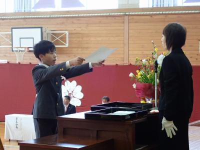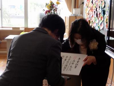 「私たちは、人の痛みがわかります。私たちは人の優しさ・温かさを知っています。私たちは、たくさんの人に支えられ、協力をいただき、今日こうして卒業式をすることができています。」