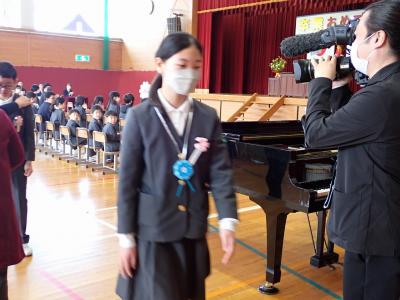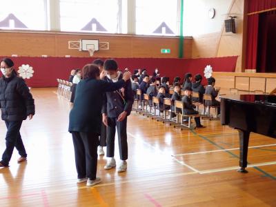 卒業式当日の朝、卒業生が久々に全員集合して卒業証書授与の練習、歌の練習をします。