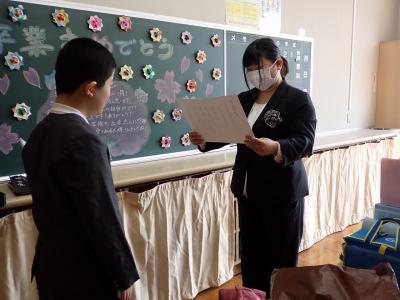 3月15日(金)、第27回卒業証書授与式を町野小学校体育館で行い、