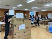 川崎市職員の方々が、2階社会科教室で罹災証明交付窓口を、1階の物資置き場で仕分け等を行っていました。
