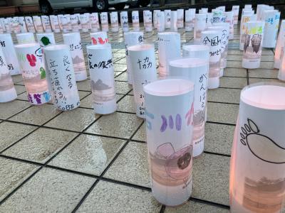 夕方、玄関に「希望の灯り」がともされていました。
