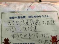 県災害ボランティア協会の方が、金沢の小学生のメッセージ付きカイロをたくさんもってきてくださいました。