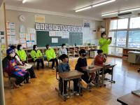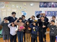 4年生や先生、県の理科指導の先生、昼食の汁物を作る熊本支援チームの方々に発表しました。