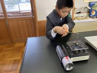 カセットコンロの使い方も一人でできるように操作をしました。