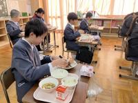 2023年12月6日 12時52分6年生カニ給食の日。