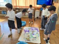 1年生は好きなエリアで、2年生に遊び方を聞きながら楽しんでいました。