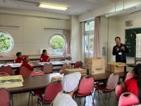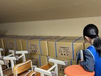 町野地区の指定避難所である東陽中学校の備蓄倉庫見学に行きました。