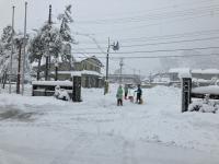 登校時の様子です。朝から校舎前の雪かきを子どもたちも手伝ってくれました。
