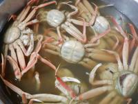 JFいしかわ輪島支所から届いた活きのいい香箱ガニ。東陽中調理場で塩ゆでし、町野小に届きました。