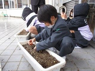 1,2年生は、午後からチューリップの球根を植えました。