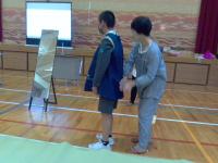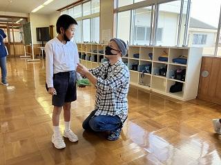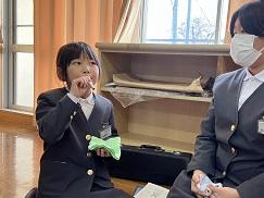 初めてトランペットを扱う3年生に対し、6年生も個別に教えていました。