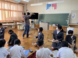 2022年11月14日 15時53分トランペットの先生(保護者)が今回も指導に来てくださいました。
