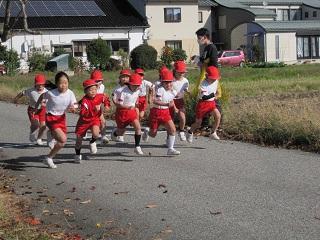 スピードを緩めそうな友達に、「いっちに、いっちに」と声をかけ励ましながら一緒に走る子もいました。