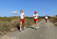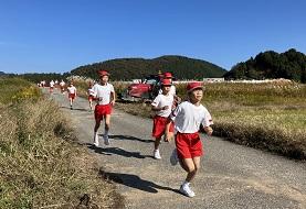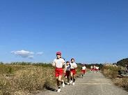 すすきの穂が爽やかな風に揺られて輝く秋晴れの下、マラソン記録会が行われました。