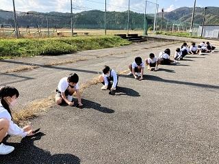 2年生は体育の時間に測ったタイムよりも1秒でも速くなるよう、一生懸命走り、全員自己記録を更新しました。